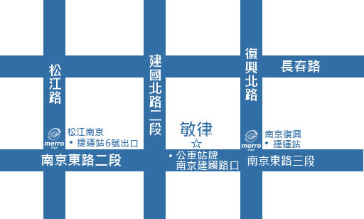 7F, No.9, Sec. 3, Nanjing E. Rd., Zhongshan Dist., Taipei City (Intersection of Nanjing E. Road and Jianguo N.Road and Next to STARBUCKS)